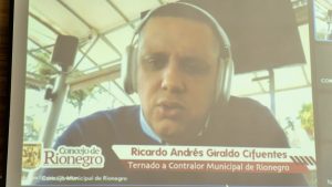 Durante la sesión, solo estuvo presente el aspirante Rodrigo Alexander Montoya Castrillón, abogado especialista en Derecho Administrativo, mientras que los otros dos, Ricardo Andrés Giraldo Cifuentes y Luis Fernando Márquez Alzate, se conectaron a la sesión por Facebook Live y fueron escuchados para sustentar su aspiración.
