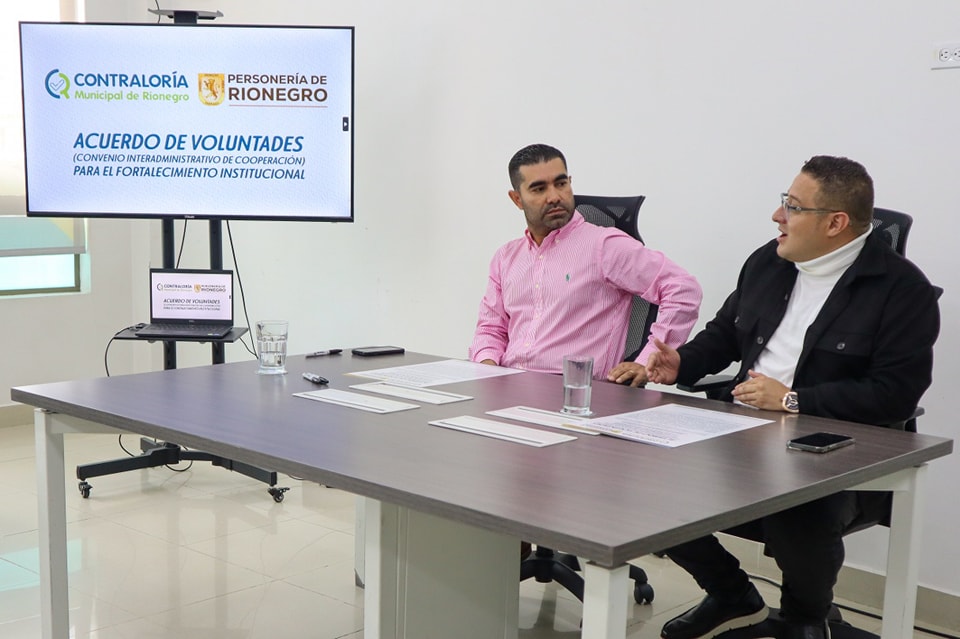 El Contralor municipal de Rionegro, Rodrigo Montoya Castrillón y el Personero Jorge Restrepo Gómez, suscribieron un Convenio de Voluntades con miras a fortalecer el control social a través del acompañamiento permanente a las Veedurías Ciudadanas y con más presencia en barrios y veredas con una unidad móvil, para escuchar en campo las inquietudes de la comunidad.