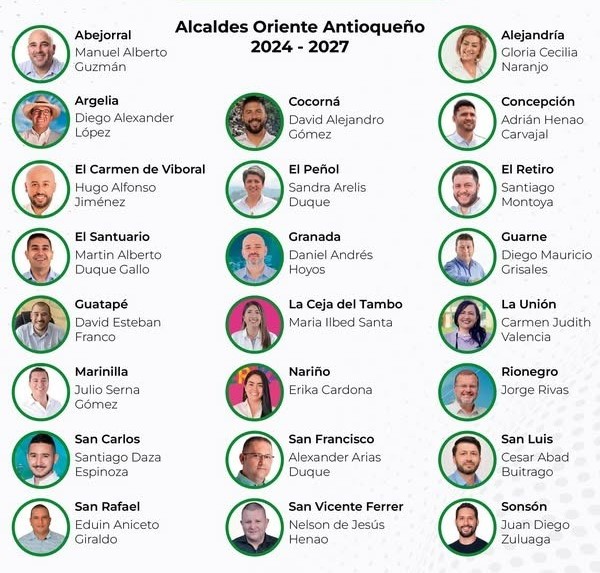 Colombia cuenta con 1.102 alcaldes, de los cuales 23 lideran municipios del Oriente Antioqueño. En las elecciones regionales de 2023, varias candidaturas en la subregión lograron un respaldo significativo en las urnas.