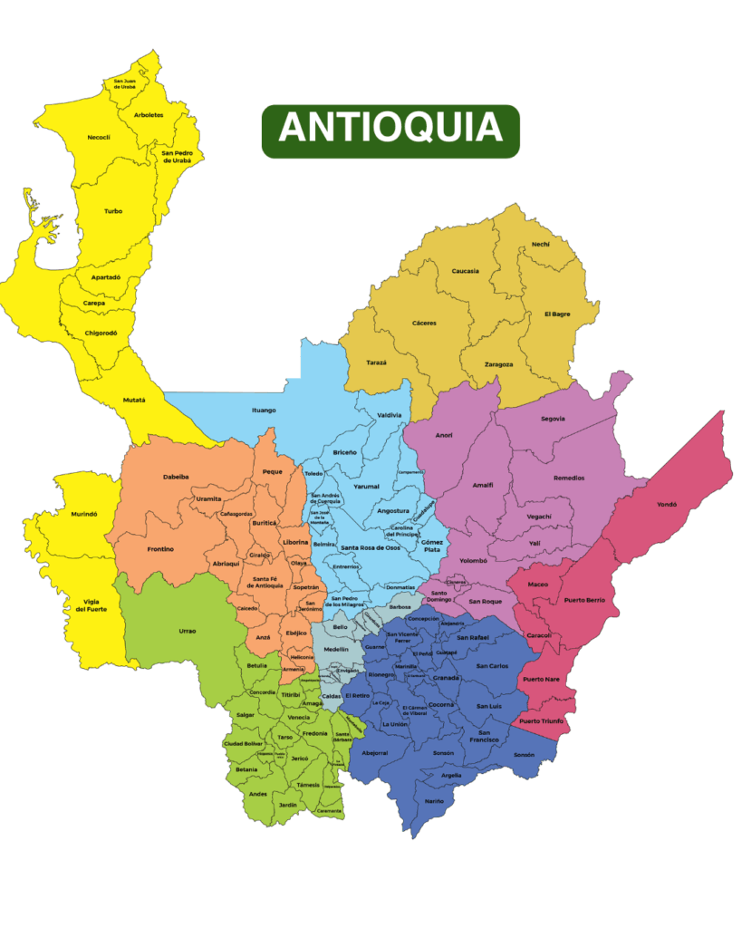 Los 47 municipios se distribuyen en: Occidente (10), Suroeste (9), Oriente (5), Bajo Cauca (5), Urabá (5), Valle de Aburrá (5), Norte (5), Nordeste (3) y Magdalena Medio (1). Entre ellos destaca Anorí (Nordeste), cuyo alcalde Gustavo Alfredo Silva Gutiérrez señaló contradicciones territoriales, «Nuestro casco urbano creció, pero el esquema vigente aún lo clasifica como rural. Esto dificulta servicios y planificación». Subrayó la necesidad de armonizar figuras como zonas de reserva campesina.