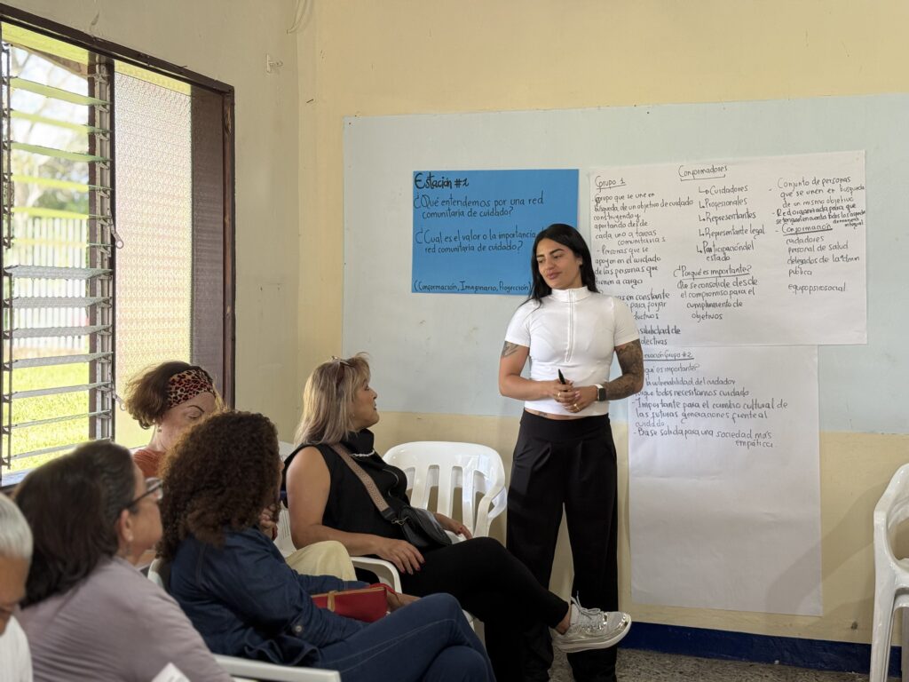 Como parte del proceso, se realizaron las denominadas Escuelas del Cuidado, espacios de formación dirigidos a personas cuidadoras y a quienes necesitan atención. En estos encuentros se abordaron temas como el reconocimiento del cuidado como derecho humano y las dificultades que enfrentan los cuidadores. Paola Puerta, profesional del PNUD, explicó que el objetivo es consolidar una red comunitaria que funcione como instancia organizativa y representativa.