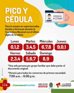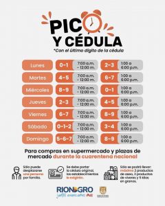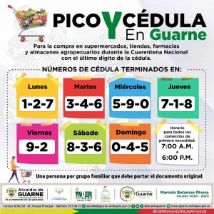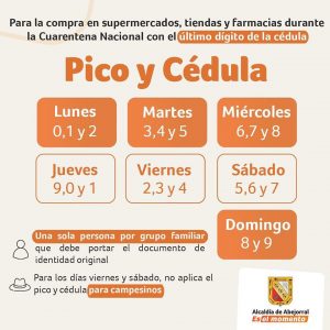 Varias administraciones municipales del Oriente antioqueño establecieron Pico y Cédula, como una estrategia de los mandatarios para regular la salida y evitar aglomeraciones de los habitantes de sus municipios en el abastecimiento de víveres, entregas de incentivos, cobros, entre otros, luego de la medida de aislamiento obligatoria decretada por el Gobierno Nacional.