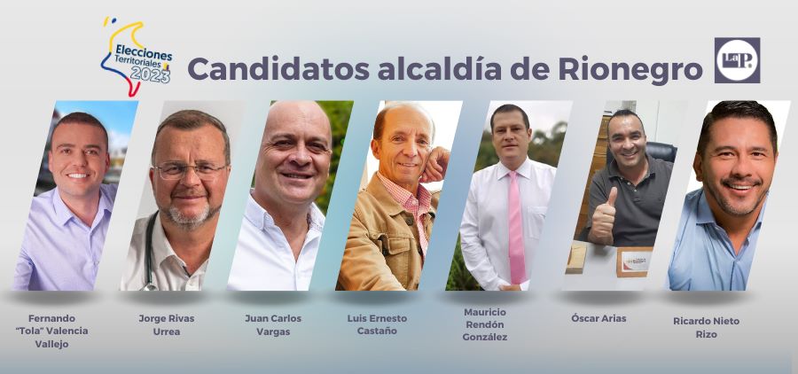 Se trata de Jorge Rivas Urrea, por la coalición “Rionegro nos une”; Fernando “Tola” Valencia Vallejo, por el movimiento “Primero la Gente”; Mauricio Rendón González por el Partido ADA; Juan Carlos Vargas, por el Partido Verde Oxígeno; Óscar Arias, por el Partido Mais; Ricardo Nieto Rizo, En Marcha y Luis Ernesto Castaño, por Partido Ecologista colombiano.