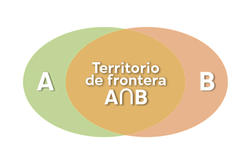 Para ilustrar mejor qué es un territorio de frontera, imaginemos dos municipios, A y B, representados por dos círculos, con competencias, recursos y límites propios. Cada municipio puede avanzar y planear proyectos de manera independiente, pero cuando los problemas sociales, económicos o ambientales se entrecruzan, surge un tercer espacio: la intersección A∩B, el territorio de frontera.