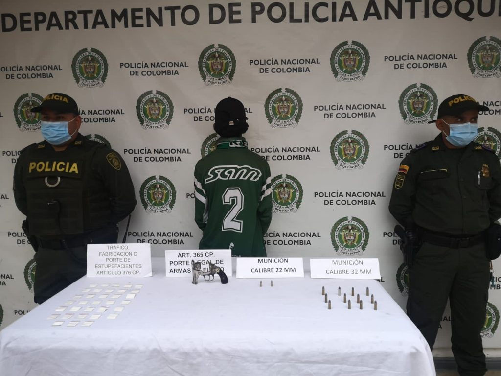 El hecho se presentó sobre la calle 33A, cuando mediante labores de patrullaje, las autoridades de Policía observaron sospechoso a un joven de 17 años, a quien le solicitaron una requisa, en esta le encontraron un arma de fuego y una considerable cantidad de sustancias estupefacientes.