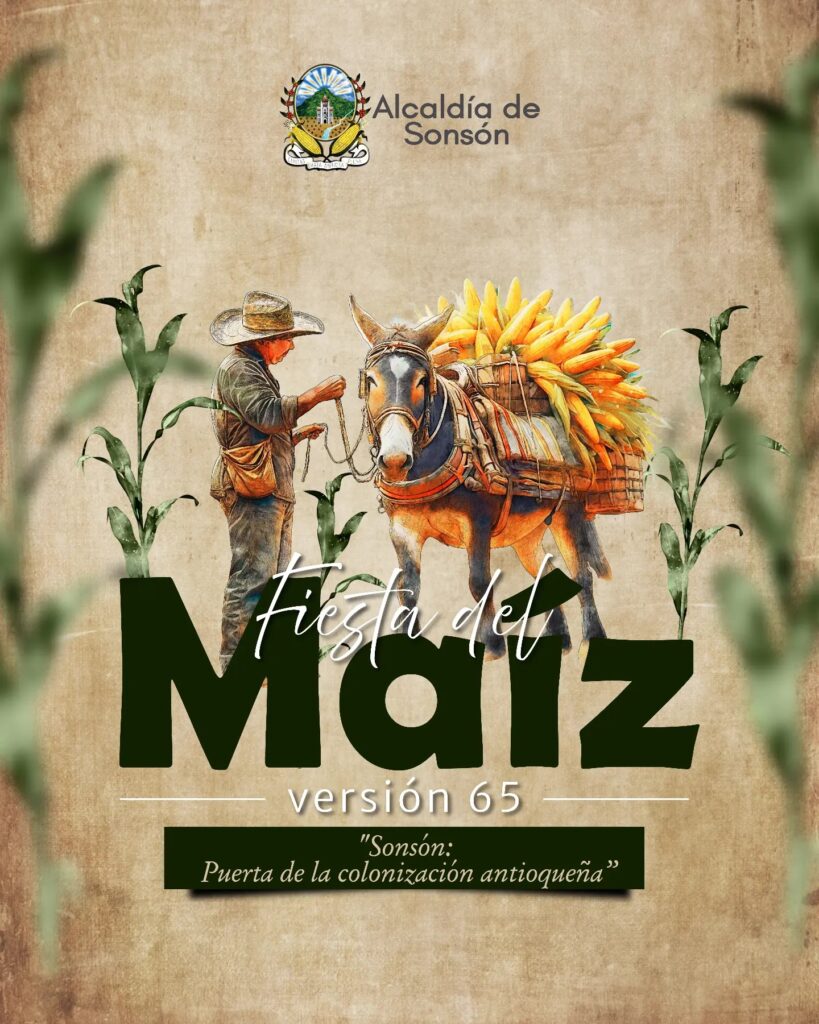 Del 16 al 19 de agosto se realizará la versión 65 de las Fiestas del Maíz en el municipio de Sonsón, con el lema “Sonsón, puerta de la colonización antioqueña”, con una nómina de 11 artistas de talla nacional como son Charlie Aponte, Luisito Muñoz, Paola Jara, Daniel Calderón, Alexis Escobar, Marcela Reyes, Tres Pesos, Cheka, JR Quintero y Los Hispanos, Afrosound y El Tropicombo, además de la presentación de artistas locales.