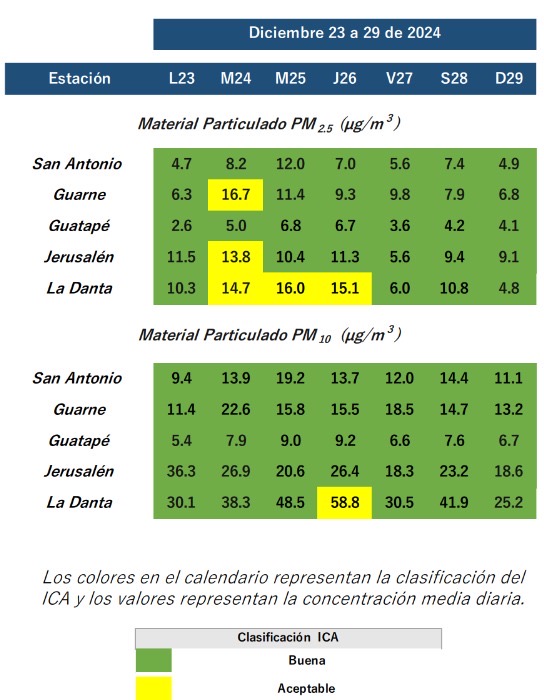 Tras las celebraciones de fin de año, las concentraciones de material particulado en el aire de la región Oriente Antioqueño incrementaron un 160%, según los resultados del monitoreo de calidad del aire realizado por Cornare. El análisis, basado en datos de seis estaciones ubicadas en municipios como Guarne, Marinilla, Rionegro, Guatapé, Jerusalén y La Danta, revela un aumento significativo en la polución luego de las festividades de diciembre 24, 25 y 31 de 2024, y el 1 de enero de 2025.