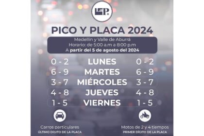 Este es el nuevo Pico y Placa para el Valle de Aburrá