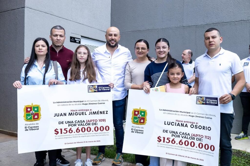 Las viviendas, ubicadas en el proyecto Villas del Carmen y avaluadas en $192 millones cada una, hacen parte de una estrategia municipal para brindar estabilidad a los atletas que han llevado el nombre del municipio a nivel nacional e internacional. Con esta iniciativa, la Administración busca fortalecer el respaldo institucional al deporte y motivar a nuevas generaciones de talentos en la región.