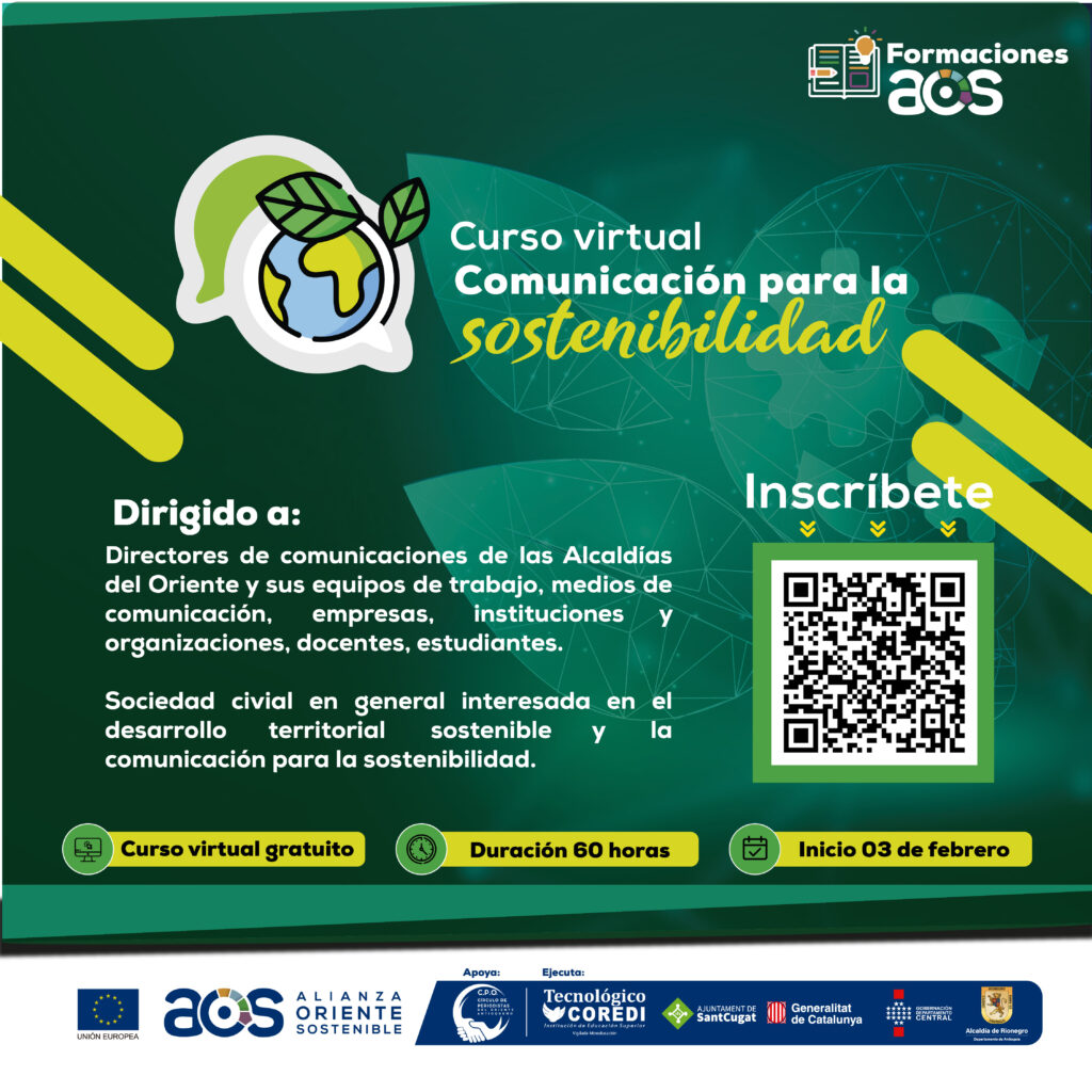 El Proyecto Alianza Oriente Sostenible (AOS) ha lanzado tres cursos virtuales gratuitos con el objetivo de fortalecer las competencias en sostenibilidad de la comunidad del Oriente Antioqueño. Estos cursos están disponibles desde el 17 de enero y se desarrollarán durante el mes de febrero de 2025. La iniciativa cuenta con la financiación de la Unión Europea y es ejecutada por la Alcaldía de Rionegro, a través de su Oficina de Proyectos Especiales.