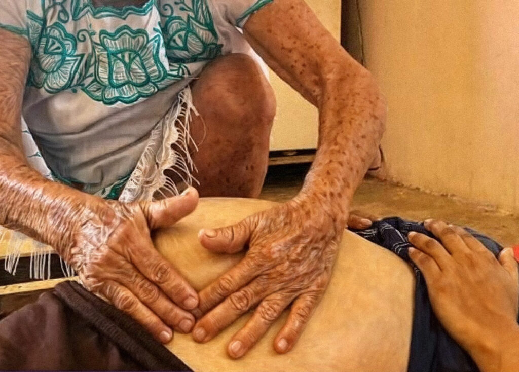 El ambiente olía a hierbas. Mientras una infusión de salvia se preparaba para realizar vahos, la partera comenzaba a dar masajes en el abdomen de la madre con aceite de higuerilla, cuya textura resbalaba suavemente entre sus dedos. Con movimientos cuidadosos, iba acomodando al bebé dentro del vientre, guiada por una sabiduría ancestral. La presión de sus manos era firme pero delicada, ayudando a la madre a sobrellevar el dolor y asegurando que el bebé estuviera en la posición correcta para nacer.