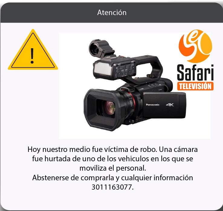 Según conoció La Prensa Oriente, el incidente ocurrió cuando los comunicadores bajaron del vehículo para buscar a su presentador. Al regresar, se percataron de que un bolso había sido sustraído del interior del automóvil. El bolso contenía una cámara Panasonic HC-X2000 4K, herramienta clave para su labor periodística.