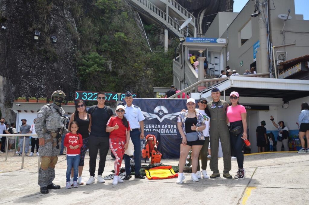 En el marco de su 105 aniversario, la Fuerza Aérea Colombiana (FAC), a través del Comando Aéreo de Combate No. 5 (CACOM 5), realizó una jornada de acercamiento con la comunidad en La Piedra del Peñol, uno de los sitios turísticos más icónicos de Antioquia. La actividad tuvo como objetivo estrechar lazos con los habitantes de la región y crear un espacio donde los visitantes pudieran conocer de cerca el rol de la FAC en beneficio de la ciudadanía.