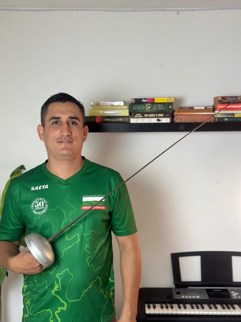 Andrés es un profesional del deporte, apasionado de la esgrima, que en más de una ocasión le invitó a ir a clase cuando vivían en un apartamento en Medellín, y aunque aceptó y se acercó a la disciplina en un par de encuentros, nunca pensó en dedicarse a ello.