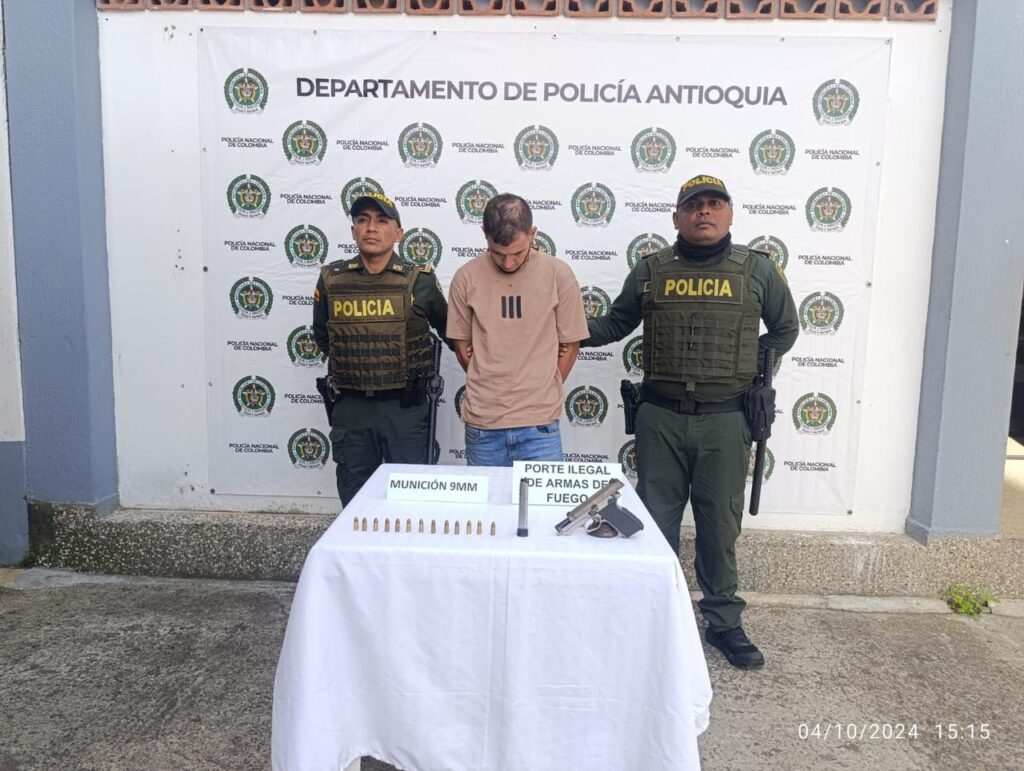 En la vereda El Sango, del municipio de Guarne, la Policía capturó a un hombre, quien al notar la presencia de la Policía en un operativo de control y registro, desenfunda una pistola y emprende la huida. Sin embargo, más adelante es interceptado y reducido por el personal policial, logrando su detención, así como la incautación del arma de fuego y varias municiones.
