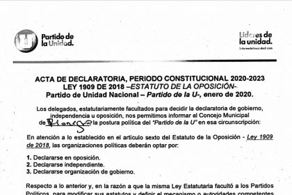 Este medio conoció la declaración oficial del partido de Unidad Nacional o…